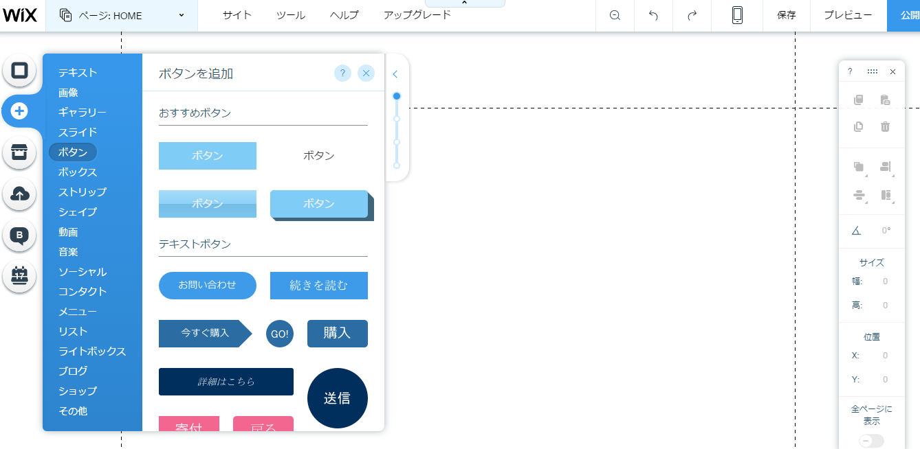 アイコンや矢印など必要なものを使っていく感じです。ここだけではなく、フリーの画像や自分で撮ったものなども使うことが可能です。Wix独自のアプリもここにあります。