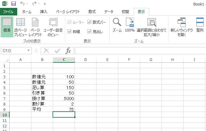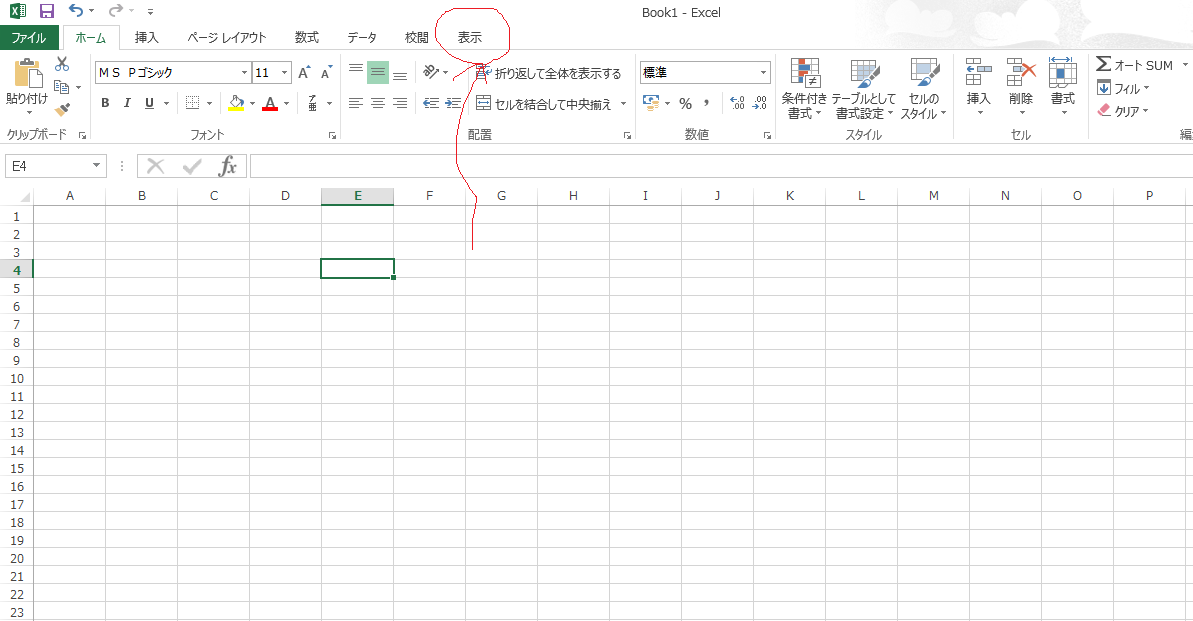 表示タブをクリック