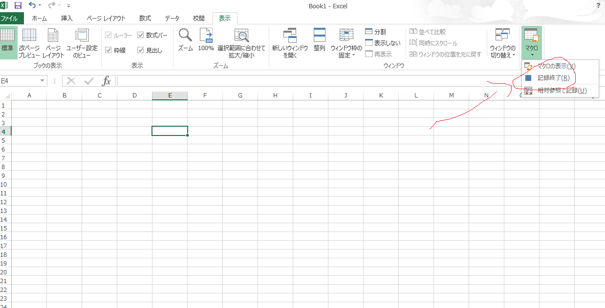 マクロの記録をクリック